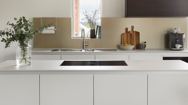 The stainless-steel sink is factory-bonded into the laminate countertop, forming a watertight seal and removing the need for silicone sealant. Similarly, a Quooker Pro3 Flex offers the homeowner instant boiling water tap, replacing the kettle whilst adding options for sparkling and chilled water.